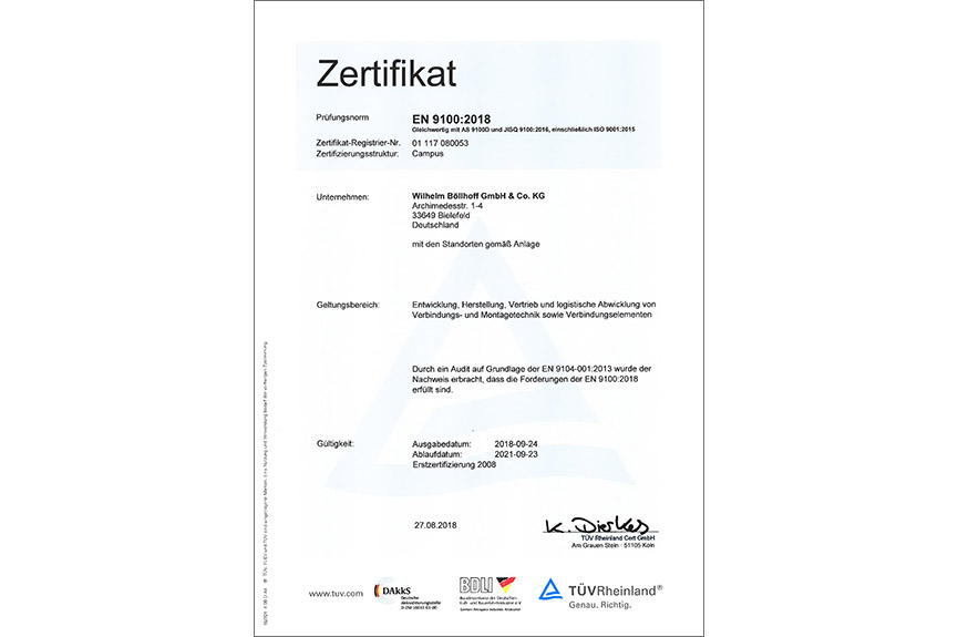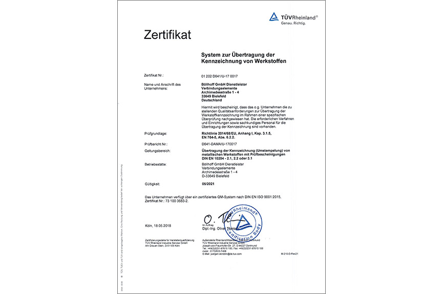 Verbindungselemente Böllhoff aktuellPrüfbescheinigungen, Werksbescheinigungen und Abnahmeprüfzeugnisse für Verbindungselemente