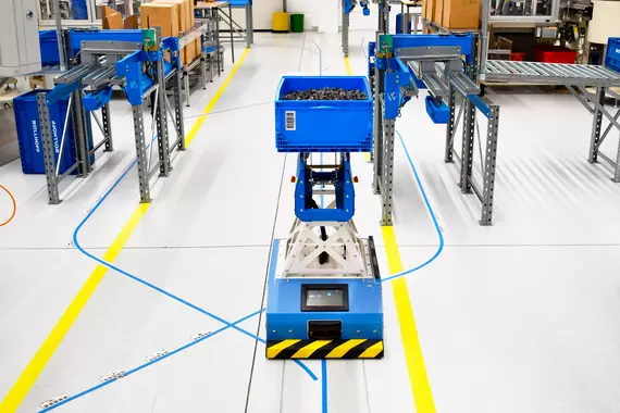 Parts transport in our assembly production facility in Bielefeld is fully automated today.