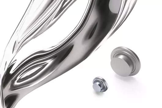 Zwei Böllhoff Weltac-Elemente aus Metall in unterschiedlichen Größen, dargestellt auf weißem Hintergrund. Die runden Verbindungselemente zeigen den typischen Bund für das sichere Verschließen von Bohrungen.