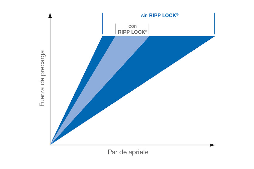 Las arandelas de seguridad RIPP LOCK® tienen nervaduras en ambos lados. Están disponibles en diámetros estándar o diámetros exteriores reducidos. Ambas versiones de arandelas están disponibles en acero (dureza: de 400 a 500 HV) con tratamiento superficial en cinc y en acero inoxidable A4 (dureza: = 800 HV). Gracias a las propiedades de gran dureza de las arandelas con borde dentado, se pueden usar con tornillos de todas las clases de resistencia hasta 12,9